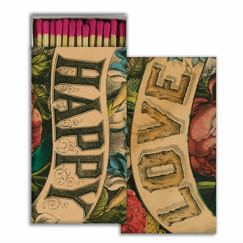 Sweet as a hostess gift, a perfect pairing to a candle and always an eye catching pop of graphic decor... our Happy Love Matches hold 50 individual matches.