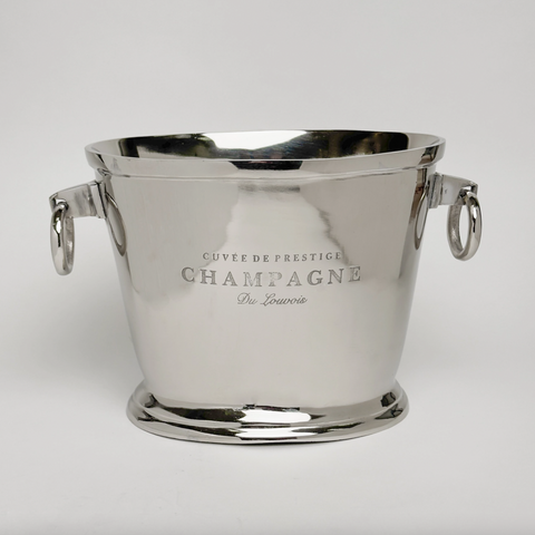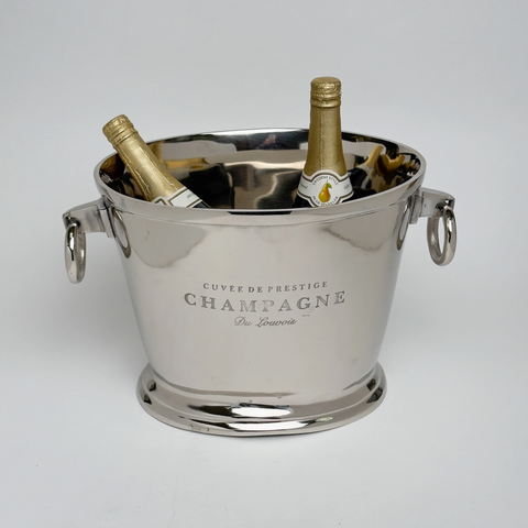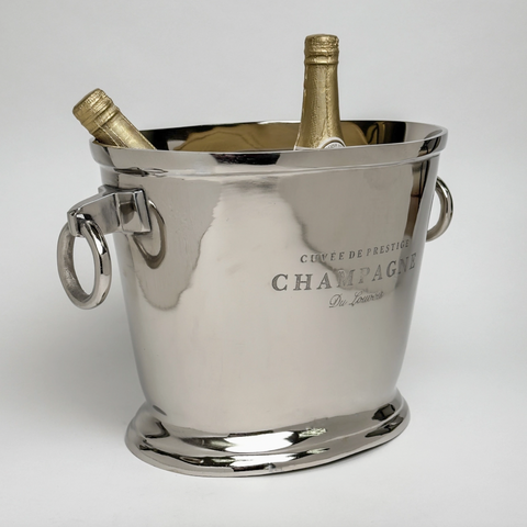 our Polished Aluminum Champagne Bucket is a stylish and functional addition to any party or event. Made from high-quality aluminum, this bucket is designed to keep your champagne or wine chilled for hours. With a capacity to hold 2 bottles, it is perfect for intimate gatherings or small celebrations. The sleek and modern design adds a touch of elegance to any setting, while the sturdy handles make it easy to carry and transport. Whether you are hosting a dinner party or enjoying a romantic evening, the Alum Champagne Bucket is a must-have accessory for any wine lover...
