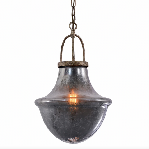 These beautiful hanging pendants pair vintage style with artisan quality. Warm light glows through a silver mercury glass shade affixed by brass base and chain. Available in three styles. Takes one type A bulb. Max. 40 watt. Hardwired kit & canopy included. UL Approved.