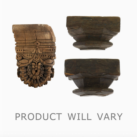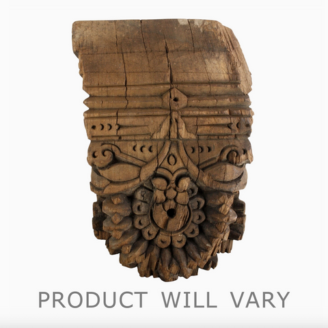 Historical architecture is salvaged... These beautiful, reclaimed wood corbels, which once held a lofty position, are repurposed as beautiful objects de art. Each piece is one of a kind and the uniqueness and secret tale it tells only adds to the beauty of this little bit of history. Each Bombay Corbel Wall Sconce is sold individually.