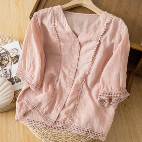 Experience effortless elegance with our Mid-Sleeve Cotton-Linen Crochet Blouse, designed for women who appreciate a touch of vintage artistry. Made from a breathable blend of cotton and linen, this lightweight summer shirt ensures all-day comfort while maintaining a chic and sophisticated look.