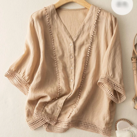 Experience effortless elegance with our Mid-Sleeve Cotton-Linen Crochet Blouse, designed for women who appreciate a touch of vintage artistry. Made from a breathable blend of cotton and linen, this lightweight summer shirt ensures all-day comfort while maintaining a chic and sophisticated look.