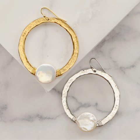 Earring 115 is as unique as its name! It features a beautifully done, hammered gold circle, with a wire wrapped accent bead on surgical steel wire.