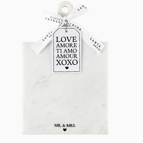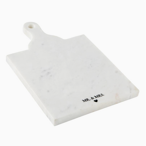 This beautiful marble board makes for a practical and unique wedding gift for the new couple. •Printed "Mr. & Mrs." on the front of the board •Comes with a printed bow and tag for that special added touch • Material: Marble • Size: 10.75" L x 7" W x 0.5" H • Care Instructions: Hand Wash Only