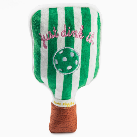 Now your dog can join the pickleball craze as well! Fetch a new level of fun with our Green Striped Pickleball Paddle! This squeaky plush toy brings together sporty stripes and canine joy, ensuring your dog stays active and stylish during playtime.