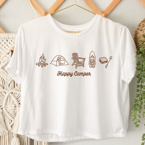 Happy Camper Cropped Tee - White