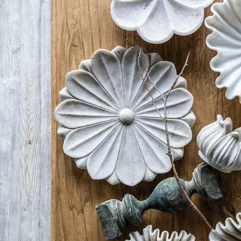 A tradition dating back to the ancient artisans of the Taj Mahal, marble carving is still a mainstay of some of India's most prolific craftsmen. Our marble and stone collection included elegant bowls, and accessories in unique, handcrafted design. Finish and size vary.