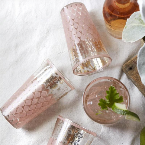 Elevate your table setting with the luxurious Patina Vie Opal Rain Tall Glass. Handcrafted with meticulous attention to detail, this glass exudes timeless beauty and sophistication. 18K Gold will add that kicky shimmer you've been yearning for... Each glass has a 16oz capacity. We recommend hand washing only.