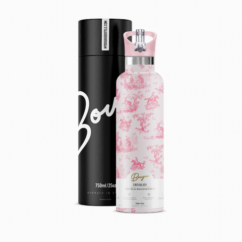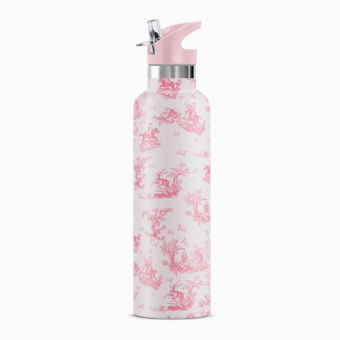 Introducing the Pink Toile Water Bottle, a majestic testament to the timeless elegance of equestrian heritage. Emblazoned with a delicate pink toile pattern depicting scenes of gallant horsemen in motion.