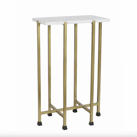 The Shimmer Side Tables work well in compact spaces without sacrificing style, making them a top seller! Available in square and rectangle, the Shimmer Side Tables feature a marble top with a discreet, modern brass frame. The legs are unyielding and include rubber, no-slip feet.