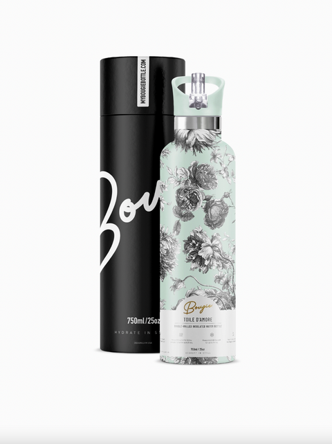 Indulge in timeless elegance with the Bougie Toile D’Amore Water Bottle. Featuring a romantic floral toile design on a soft mint background, this bottle is a perfect blend of vintage charm and modern functionality.