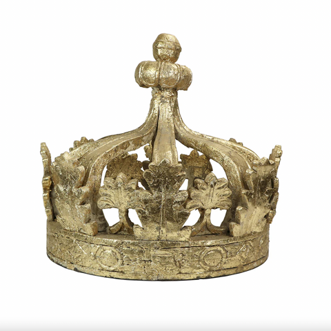Give yourself the royal treatment with our ornately carved wooden crown. Made of resilient pine, each one was artfully burned during craftsmanship using a technique called pyrography, where wood is decorated with burn marks. The crown, small comes decorated with high-quality gold leaf.